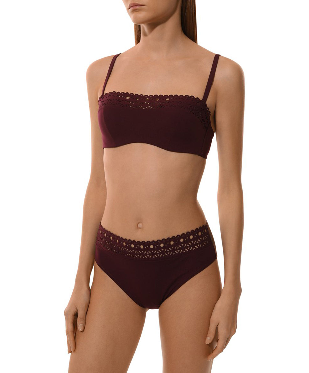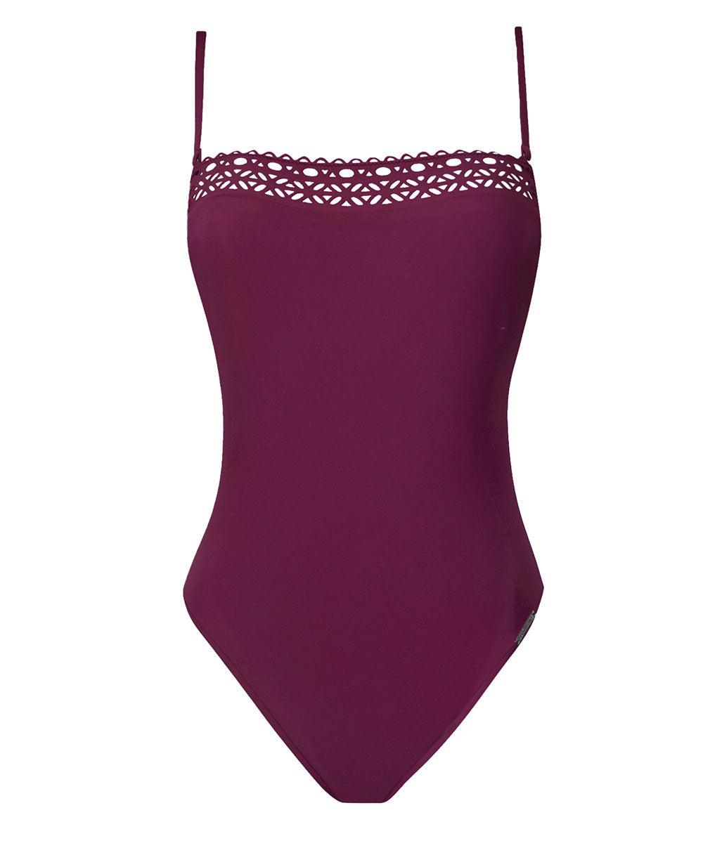 La collection pour le bain Ajourage Couture de chez Lise Charmel : cette ligne balnéaire signée Lise Charmel regroupe des maillots de bain au design minimaliste et à l'esprit couture très haut de gamme. Conçues dans un style sobre et contemporain, ces créations font la part belle à des lignes épurées et à des modèles de maillots des plus féminins dont l'esthétique n'a d'égal que la qualité. Ces tenues de bain sont en effet confectionnées dans une maille Lycra Beauty® qui épousera vos courbes pour vous offrir une seconde peau, et dans laquelle est incrustée une sublime bande ajourée de motifs graphiques dans un esprit macramé des plus chics.