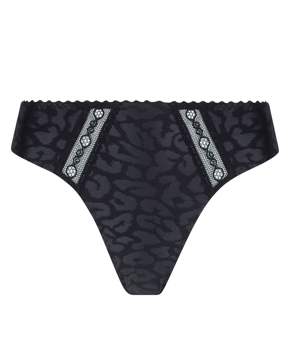 -Dessous chic conçu en maille imprimée frappée imitant la robe d'une panthère noire, sublimée par un galon dentelle.