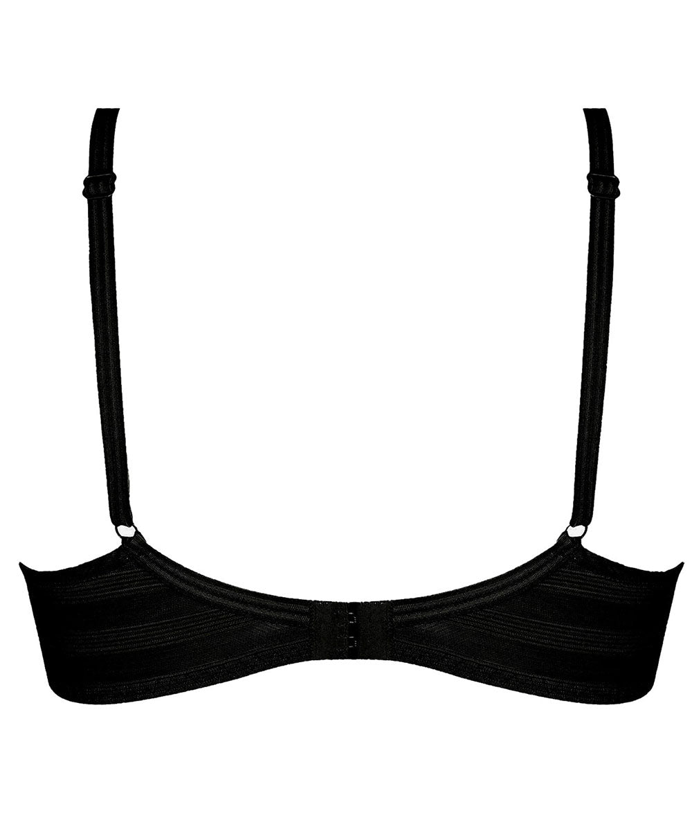 -Sous-vêtement fabriqué en maille microfibre Lycra Shaping douce et soyeuse pour un fitting et un confort hors du commun alliée à un tulle graphique à rayures pour une originalité et un ajourage glamour en toute subtilité.