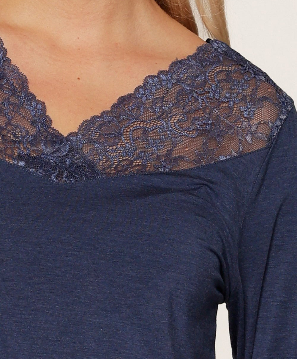 Ensemble pyjama dark denim bambou col en dentelle collection nightwear de chez Lingadore.