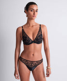La culotte italienne Cosmic Romance d’Aubade revisite un classique de la lingerie avec une touche de modernité audacieuse. Cette forme, appréciée pour son échancrure subtile qui dégage la cuisse tout en couvrant délicatement le fessier, offre un compromis idéal entre le confort d'un slip et la sensualité d'un tanga. Le modèle se pare d'une broderie florale sophistiquée sur le devant, tandis que le dos joue la carte de la séduction avec une tulle transparente qui laisse deviner la peau. C’est une pièce d'exception qui sublime les courbes féminines avec une élégance intemporelle et un brin provocatrice.