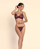 Mini-string sexy collection de lingerie Élégance Artist coloris orchidée de chez Lise Charmel.