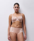 Culotte taille haute collection Glaze coloris soft pink de chez Chantelle.