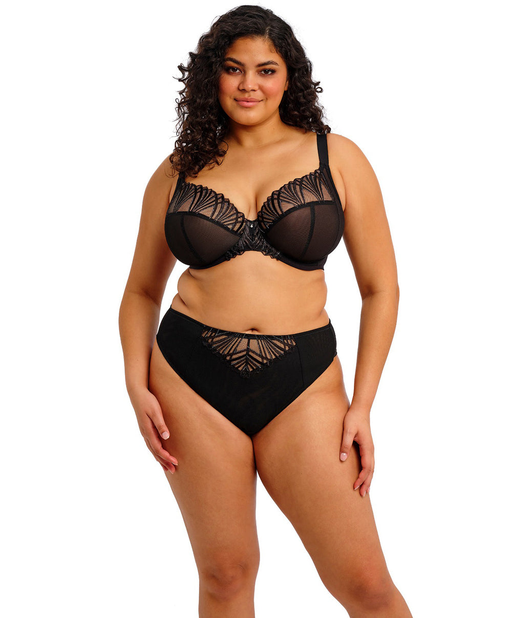 Collection Reja par Elomi – Lingerie Grande Taille Élégante et Confortable : Découvrez la collection Reja d’Elomi, une ligne de lingerie grande taille au style raffiné et contemporain. Inspiré du best-seller Matilda, le soutien-gorge Plunge à armatures Reja séduit par sa broderie délicate d’inspiration Art déco, sublimée de fils lurex argentés pour une touche glamour façon années 1920. Ce modèle combine soutien, élégance et confort au quotidien : son entre-seins flottant évite toute marque sur la peau, tandis que la bande sous la poitrine est habillée d’un élastique souple et sans coutures pour un maintien tout en douceur. Avec Reja, Elomi signe une lingerie grande taille aussi féminine que confortable, pensée pour sublimer chaque silhouette.