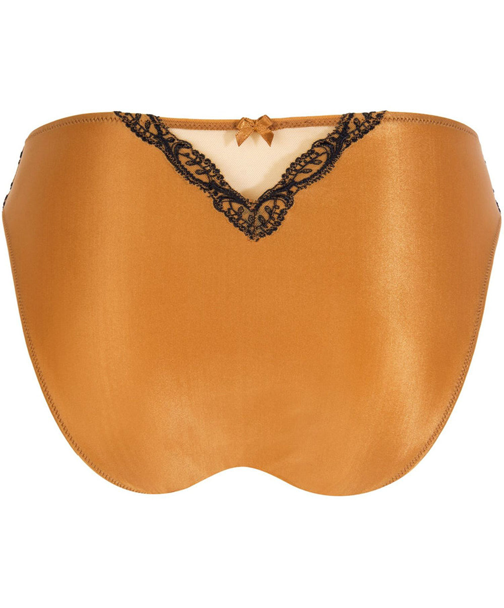 -Dessous chic confectionné dans la soie, textile ô combien mythique par sa douceur et son confort exceptionnel. Le coloris ambre offre une luminosité époustouflante sur la soie et des reflets dorés aux délicieuses touches de caramel.