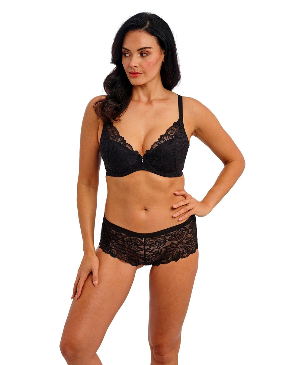 sont conçus pour révéler la féminité avec audace et raffinement. Jouant sur la transparence, la dentelle et les détails sophistiqués, ils offrent un galbe parfait et un confort étudié, pour que la lingerie soit à la fois séduisante et agréable à porter.