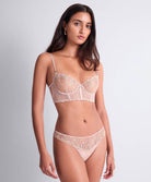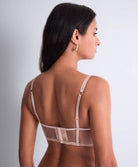 Soutien-gorge bustier spectaculaire de la collection lingerie Cosmic Romance Sand rose par Aubade Paris.