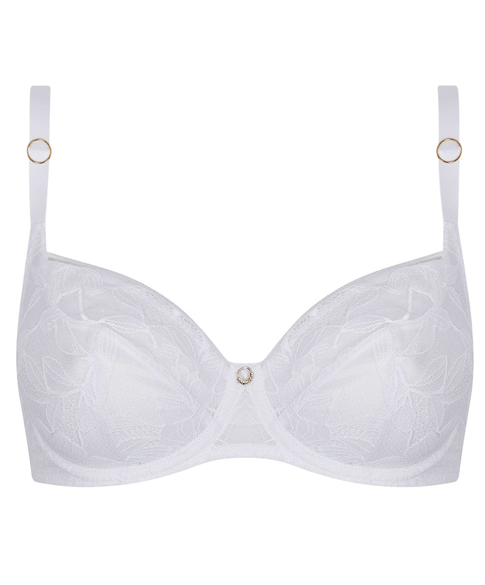 La collection Dentelle Rebelle en coloris blanc par Antigel de Lise Charmel : La collection Dentelle Rebelle d’ANTIGEL incarne une lingerie féminine au caractère affirmé, moderne et audacieux. Inspirée des papiers découpés de Matisse, elle met en scène des fleurs stylisées dessinées sur une dentelle fine et arachnéenne, pour un effet visuel à la fois artistique et délicat. Cette ligne de lingerie haut de gamme joue les contrastes : la dentelle sensuelle rencontre des élastiques rayés au style sporty chic, créant un équilibre surprenant entre douceur féminine et géométrie structurée. Les parures de lingerie et de corseterie se déclinent dans des coupes affûtées, qui subliment la silhouette. Découvrez Dentelle Rebelle, une collection de lingerie unique qui allie design, confort et séduction – signée ANTIGEL Lingerie, créateur français basé à Lyon.