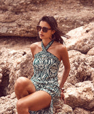 Robe de plage longue bustier tour de cou Valeria par la marque espagnole de maillots de bain Nuria Ferrer.