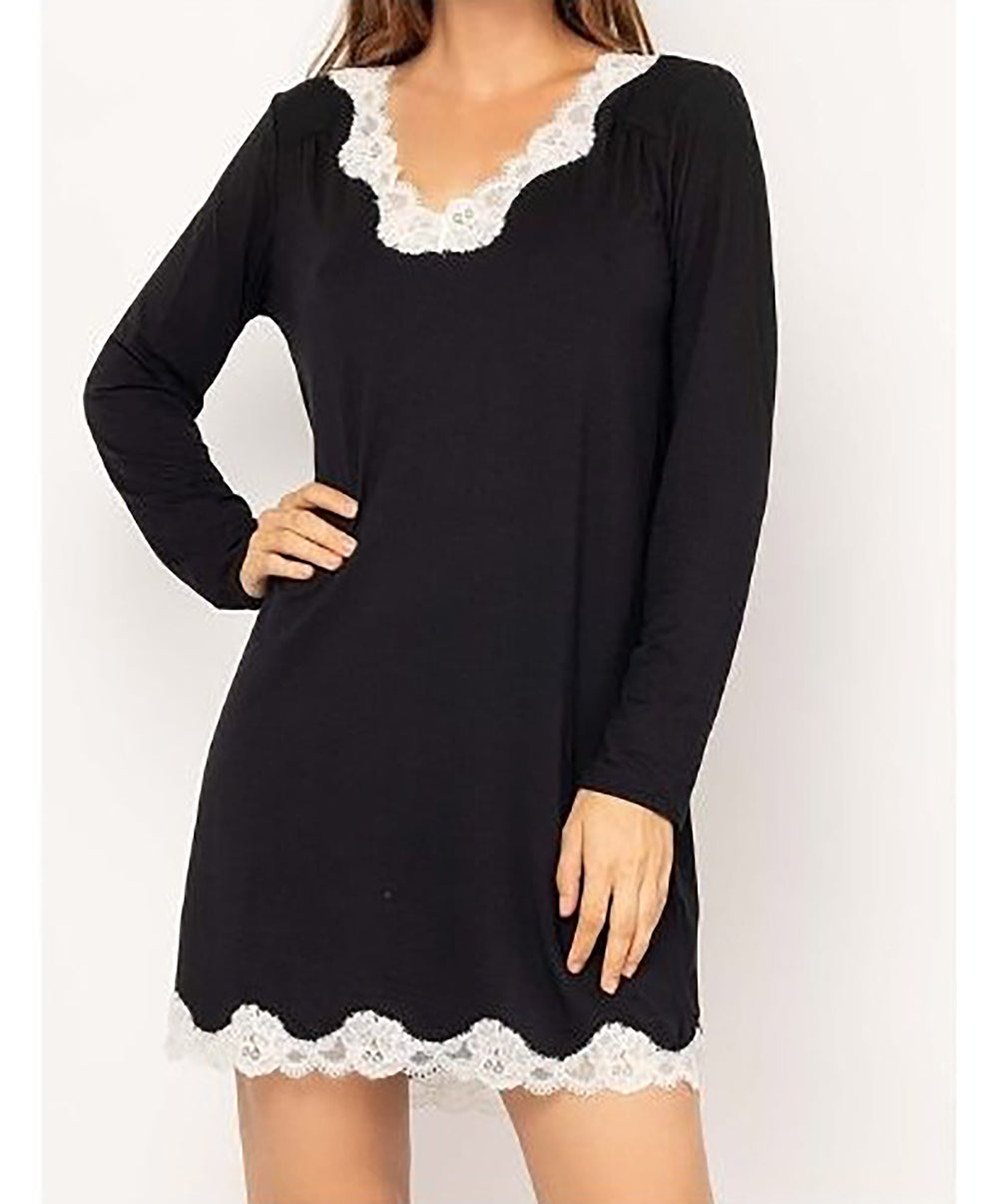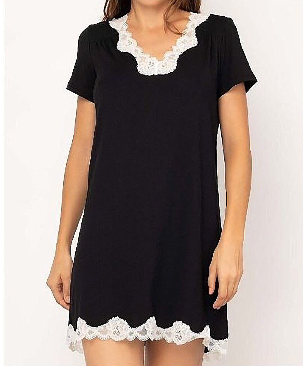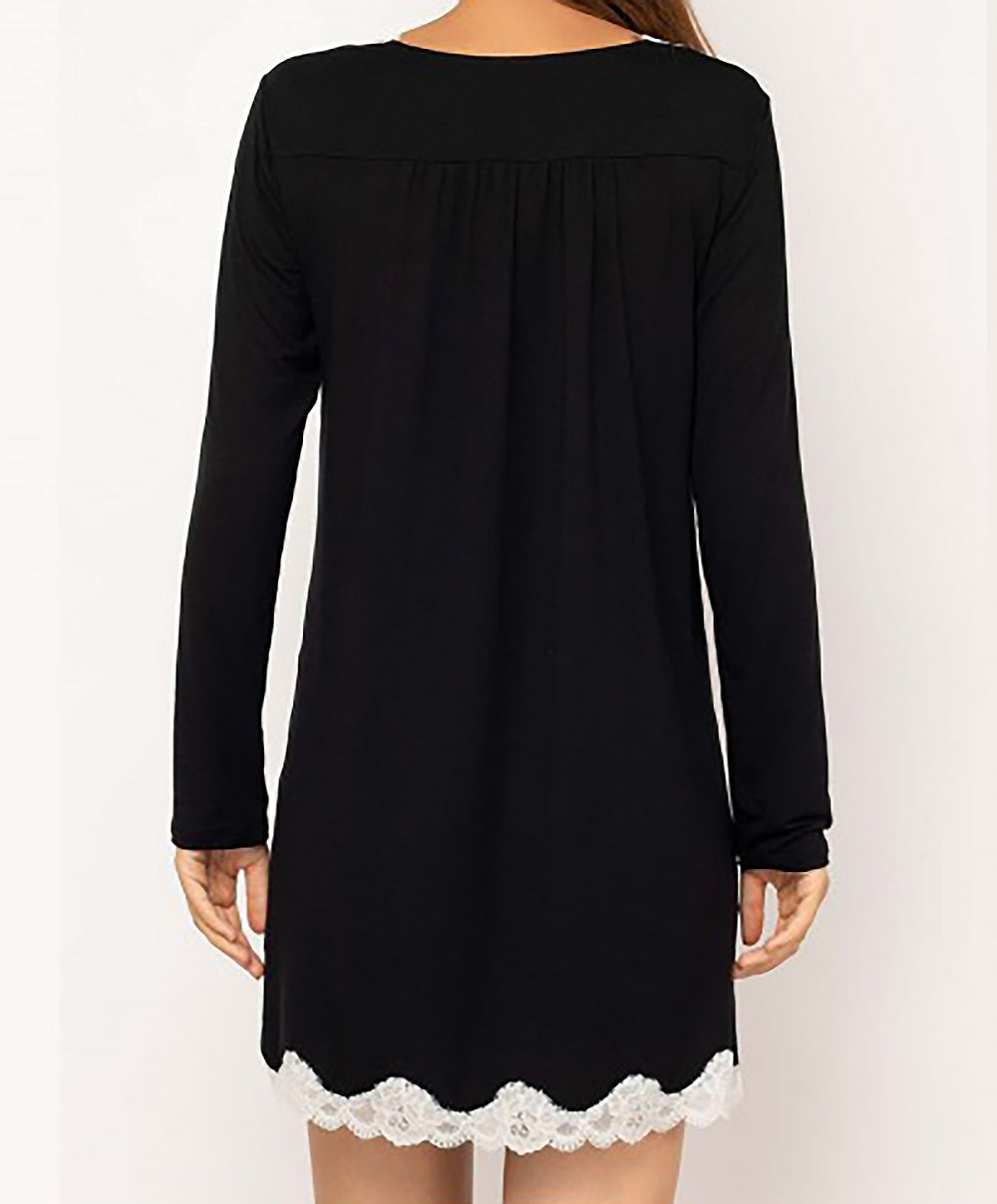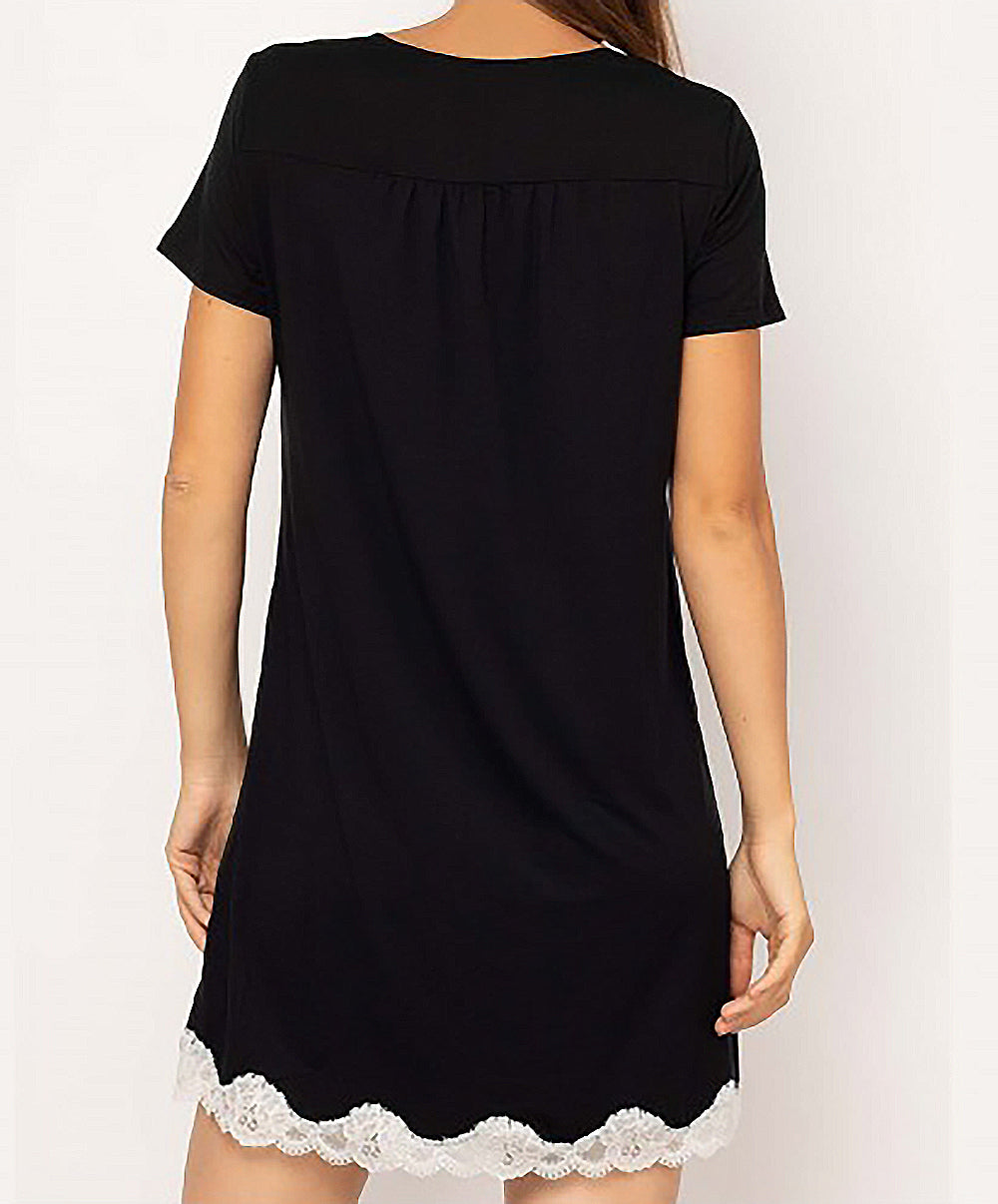 -Vous allez adorer les empiècements de dentelle nacrée pour jouer le total look black au bas de la pièce et au décolleté de ce t-shirt noir qui vous confèreront une élégance toute particulière.