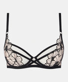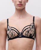 Soutien-gorge armaturé enveloppant Chantelle Pulp collection lingerie de charme Lush, coloris noir et rose pâle.