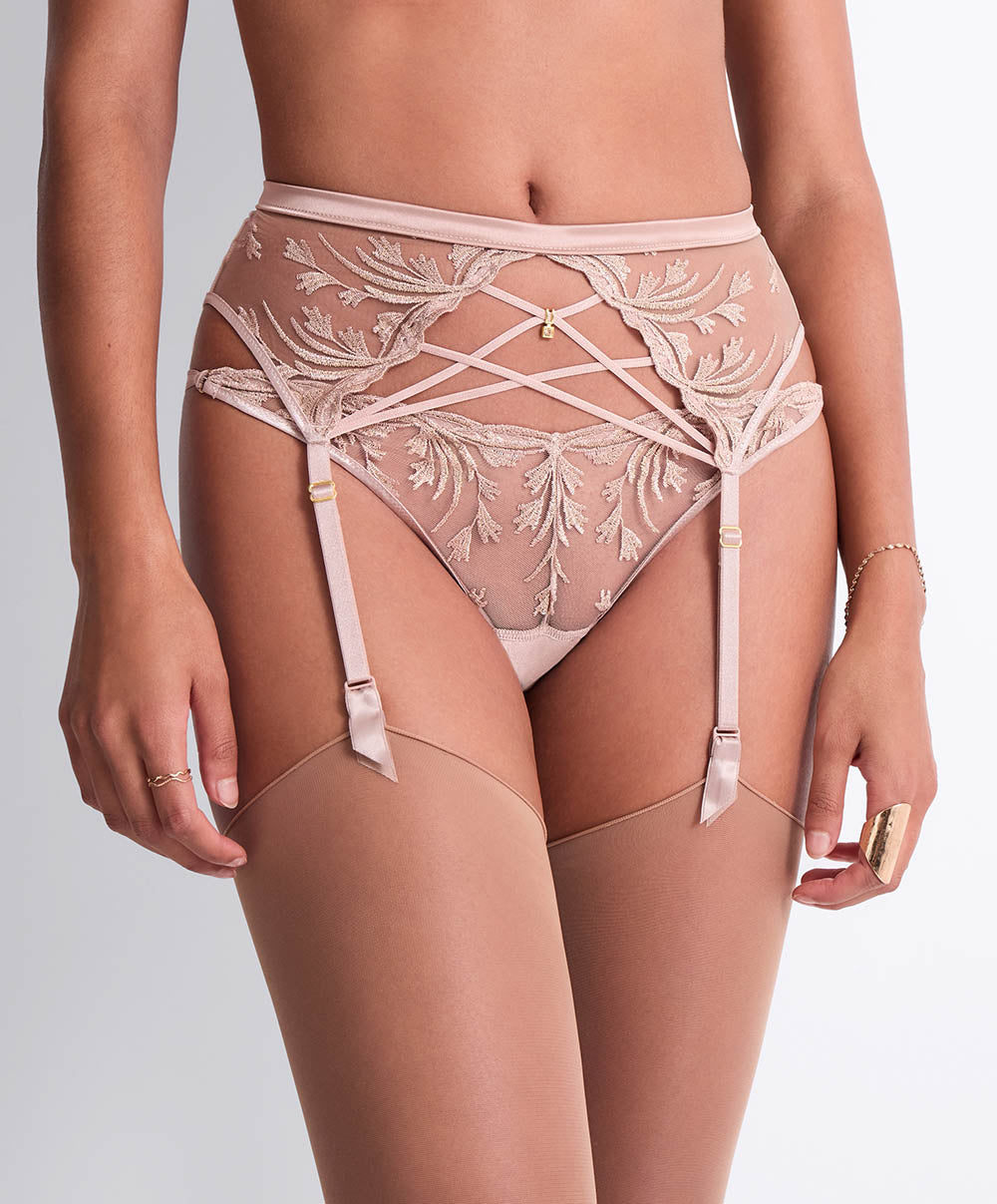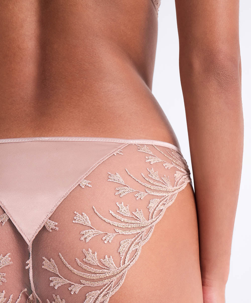 Tanga sexy et raffiné de la collection lingerie Cosmic Romance Sand rose par Aubade Paris.